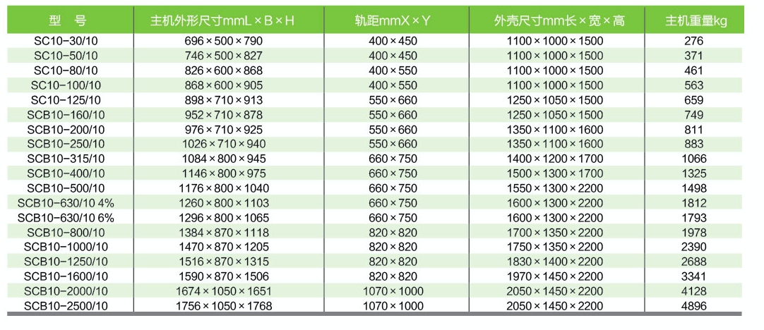 干式變壓器的重量取決于多個(gè)因素,包括變壓器的型號(hào)、設(shè)計(jì)容量、材料和制造工藝等。以下是SCB10系列干式變壓器的尺寸及重量:
