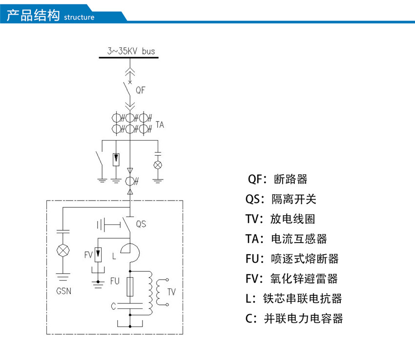 MSCHC型高壓無功集中補償裝置,是將固定容量的電容器組 并聯(lián)連接在配電變壓器3~35kV母線上,提供固定容量的容性無功功率,補償感性無功功率,改善功率因數(shù),穩(wěn)定系統(tǒng)電壓,從而降低線路損耗,提高變壓器傳輸容量,提高整體的電力傳輸效率。裝置由并聯(lián)電容器、串聯(lián)電抗器、放電線圈、避雷器、控制和保護裝置等組成。主要應(yīng)用于3~35kV負荷波動不大的交流電力系統(tǒng)中
